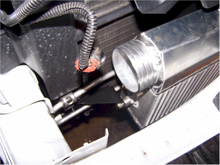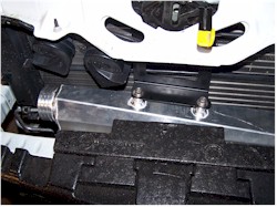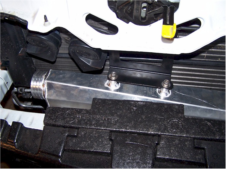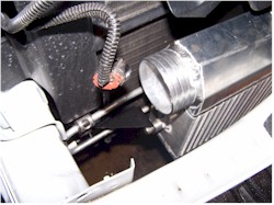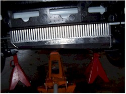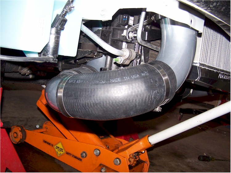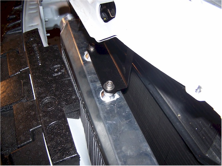 | We removed all of the original air intake ducting, air filter box and the plastic cover that goes over the top of the radiator. We then removed the front bumper cover by removing 2 nuts at the junction between the fender and the bumper on each side of the car, there was a push pin connector on the passenger side. There are two screws at the top of the bumper under the hood also. |